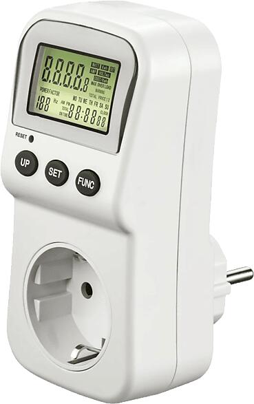 Villamos készülékek energiafogyasztásának, villamos energia költségének mérése, meghatározása. Előnyök: Mérési opciók: idő, feszültség, frekvencia, áram, teljesítménytényező, (min. és max. ) teljesítmény és energiamennyiség Energiaköltségek számítása és megjelenítése 2 egyénileg beállítható villamosenergia-tarifával (pl. normál és éjszakai tarifa) Egys