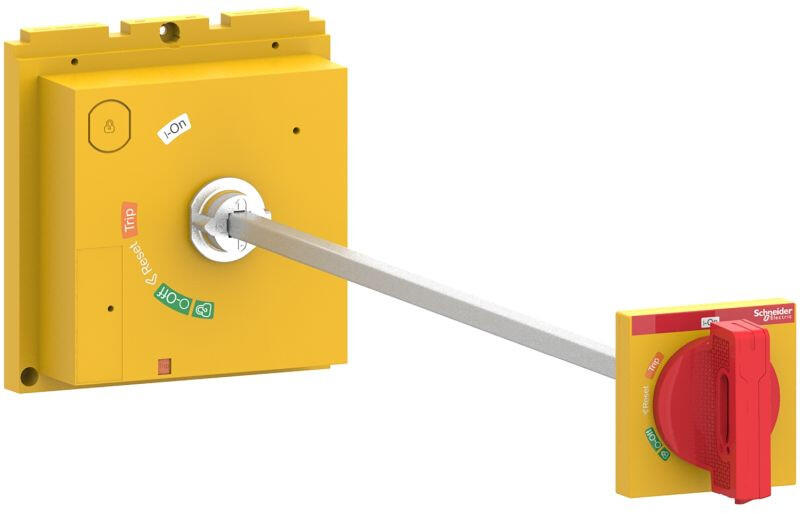 Hosszabbított kézi hajtás sárga/piros kar LV432600T Schneider Ez egy meghosszabbított forgatható fogantyú a ComPacT NSX 400/630 és a PowerPact Multistandard L keretes készülékekhez. Alkalmas szigetelésre és szabványos alkalmazásokhoz használható. Fenntartja a hozzáférést a kioldóegység beállításaihoz és a kioldógombhoz. Sárga előlapon piros színű fogantyúval van ell