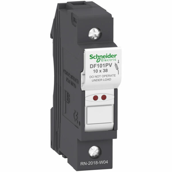 10X38 biztosíték tartó 1P 1000VDC DF101PV Schneider 10X38 biztosíték tartó 1p 1000VDC. termékcsalád: TeSys - termék neve: TeSys DF - termék vagy komponens típusa: biztosítóaljzat - készülék rövid megnevezése: DF10 - pólusok megnevezése: 1P. Előnyök : Egyszerű és hatékony védelem!. Az olvadóbiztosítós védelem megbízható és hatékony megoldás a kisfeszültségű ber