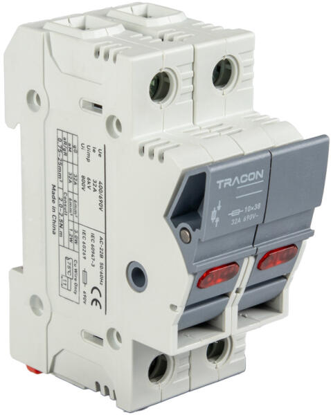 CFBLPV2P32 Szakaszolókapcsoló-biztosító hengeres bizt. hoz, PV 32A, 10×38, Un=1000VDC, Ui=6kV, 20kA, DC-PV0, IP20, 2P, LED 32A, 10×38, Un=1000VDC, Ui=6kV, 20kA, DC-PV0, IP20, 2P, LED