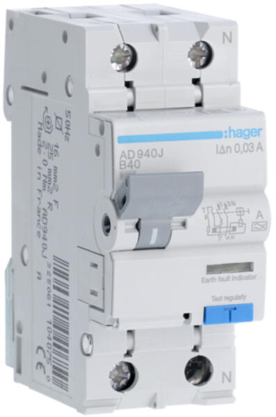 HAGER Áramvédős kismegszakító 1P+N, B-40A, 30mA, 6kA, A (AD940J)