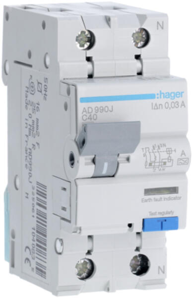 HAGER Áramvédős kismegszakító 1P+N, C-40A, 30mA, 6kA, A (AD990J)