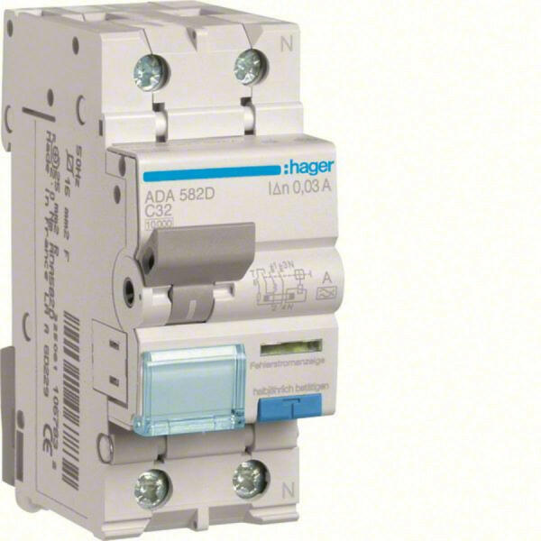 HAGER Áramvédős kismegszakító 1P+N, C-32A, 30mA, 10kA, A (ADA582D)