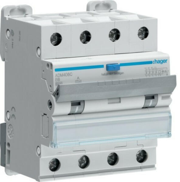 HAGER Áramvédős kismegszakító 3P+N, B-6A, 30mA, 6kA, A (ADM406C)