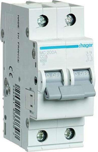 HAGER Kismegszakító 2P, C-0,5A, 6kA, 2M (MC200A)