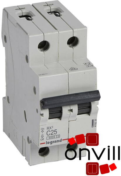 RX3 lakossági kismegszakítók 6 A és 63 A között C jelleggörbe Megfelel az IEC 60898-1 szabványnak Segédérintkezők fogadására nem alkalmas Zárlati megszakítóképesség: 6000 - IEC 60898-1 - 230/400 V~ 6 kA - IEC 60947-2 - 230/400 V~ 10000 - IEC 60898-1 - 127/220 V~ 10 kA - IEC 60947-2 - 127/220 V~ Kétpólusú 230/400 V~ C jelleggörbe Névleges áram In : 25 A 17,5 mm-es modulszám