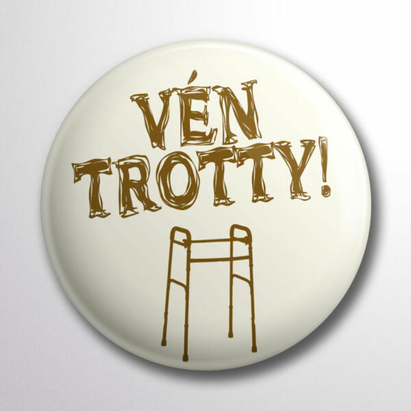 Kitűző nyugdíjasoknak, vén trotty felirattal. Légy büszke, hogy megélted ezt a kort és mások felnéznek rád. Kitűző nyugdíjasoknak, vén trotty felirattal. Légy büszke, hogy megélted ezt a kort és mások felnéznek rád. Anyaga: fém Hátlap: tűs Mérete: 58mm vagy 75mm