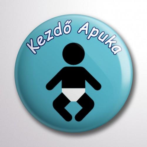 Kezdő apuka feliratos kitűző azoknak, akik épp most kezdik a gyereknevelést. Mókás kitűző aggódó apukáknak. Vicces kitűző kezdő apukáknak! Fogalmad sincs, hogy melyik a pelenka első fele? Hogy megy ez a gyerekre? És egyébként is, miért a nadrág szárán bújuk ki a baba keze? Tűzd fel a kitűzőt, hogy mindenki tisztában legyen vele, hogy Veled vigyázni kell, még nem ért