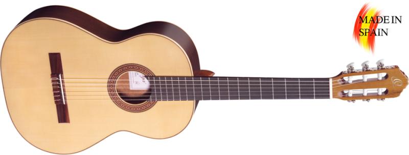 klasszikus gitár 4/4-es méret, sitka fenyő fedlap, nato hát- és oldallap, jabon nyak, 19 érintő, ebonizált mahagóni fogólap, menzúra: 650 mm, felső nyereg szélessége: 52 mm, ebonizált mahagóni húrláb, nikkelezett Vintage hangolókulcsok, fekete ABS binding felül és a nyakon, jabon binding az oldalakon, Classic Sunburst kivitel