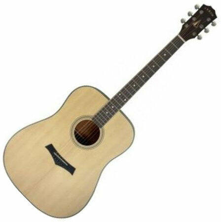 Akusztikus gitár dreadnought testformával. Tömör lucfenyő fedlap Hátlap és oldal mahagóni. krómozott hardver