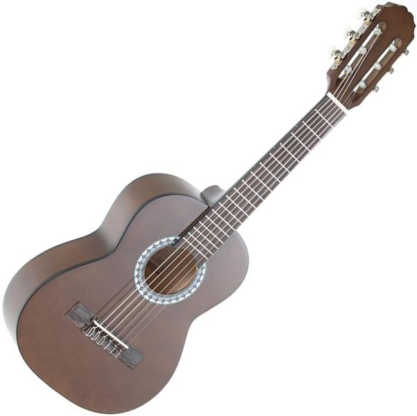 GEWAPURE Basic 1/4 Klasszikus Gitár PS510110 Hársfa test Test binding ABS Fogólap és hid Pakka fa Újezüst bundok Krómozott hangolókulcsok Környezetbarát matt lakkozás vizalapú Menzúra 450mm Nyereg szélessége 43mm 4-7 éves gyerekeknek 1/4 méret Szín: matt dió
