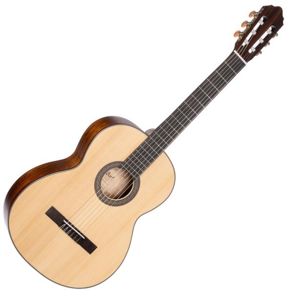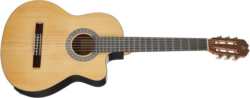 Elektro-klasszikus gitár, fenyő fedlap, Fishman elektronika Konstrukció: csavarozott nyak Test: fenyő tető, vékony üreges mahagóni test Nyak: mahagóni Menzúra: 25.5"; (648 mm) Fogólap: Pau Ferro Rádiusz: 400 mm Felső nyereg: 48 mm (1 7/8), Graph Tech TUSQ Bund: 22 Elektronika: Fishman Sonicore VTB EQ system Híd: Pau Ferro Kulcs: klasszikus Húr: Savarez Cristal Corum 500CJ Szín: nat