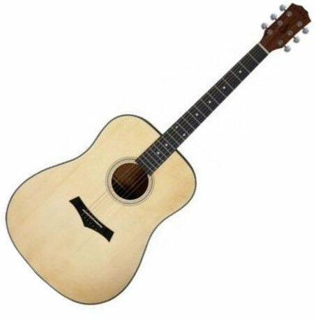 Akusztikus gitár Dreadnought test lucfenyő Fedlap. Hátlap és oldal mahagóni. Króm hardverrel