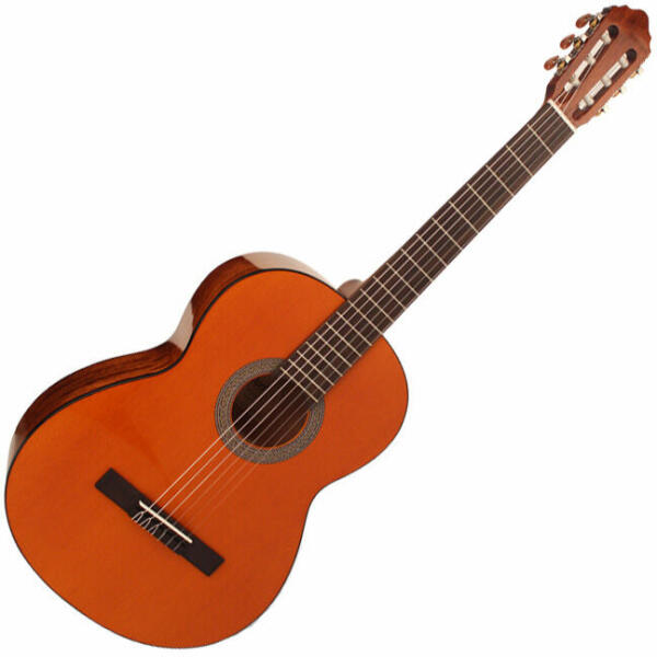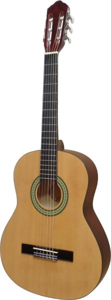 VGS 500224 Pro NaturaSilver Klasszikus Gitár 7/8 méret, kb. 11-13 éveseknek 620 mm-es menzúra Nyereg szélessége 48 mm, teljes hossza 960 mm Tömör lucfenyő fedlap Juharfa nyak, akácfa fogólap és híd 3 rétegű fa szegély a fedlapon, 1 rétegű a hátlapon Krómozott Van Gent hangolókulcsok Lyra-val, akril gombokkal Made in Europe Hátlap és káva dió Headstock dió