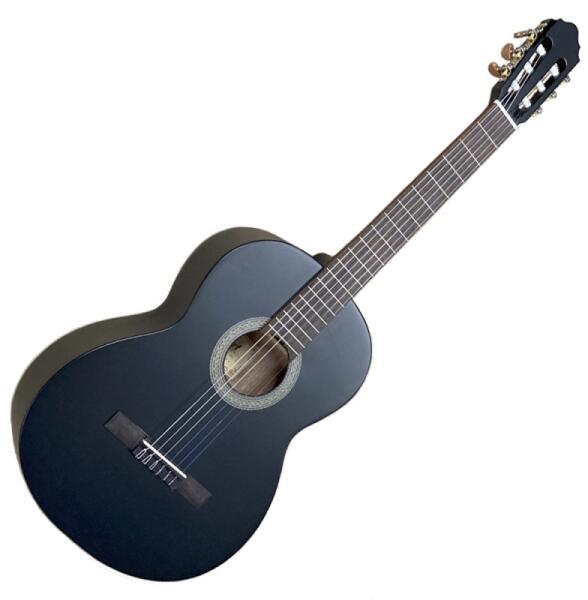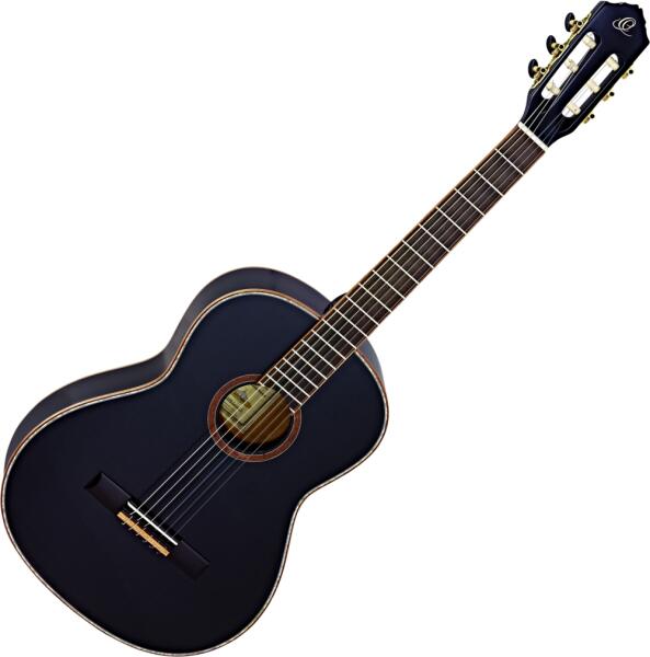 ORTEGA R221SNBK Klasszikus Gitár Fedlap:fenyő Hát és oldal: mahagóni Nyak: mahagóni Fogólap: sonokelin Menzúra: 650 mm Nyakszélesség a húrvezetőnél: 48 mm Érintő: 19 Hangoló:gold plated Húrláb: sonokelin Nyakállitó pálca Szín: Fekete