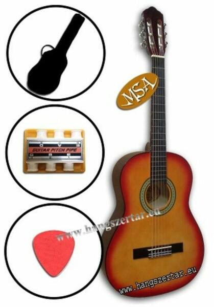 MSA C-7 Lh, balkezes 3/4-es, natur klasszikus gitár szett 2. A gitár jellemzői Méret: 3/4, 36″ Hossza: 92,5 cm Nyakszélesség: