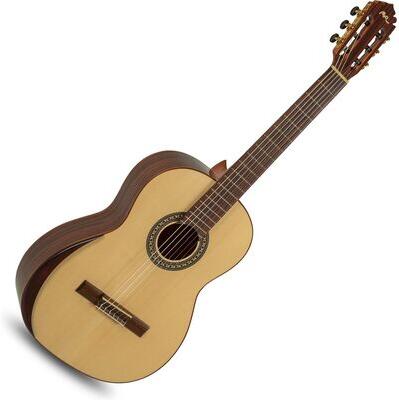 Nylon húros, 4/4-es méretű klasszikus gitár, matt natúr színben. Fedlap: Fenyõ Hát és oldal: Meranti Nyak: Nato Fogólap: Rózsafa Menzúra: 650 mm (25,6") Nyakszélesség húrvezetõnél: 52 mm (2 1/16") Húrláb: Rózsafa Kulcsok: Króm Szín: Matt natúr