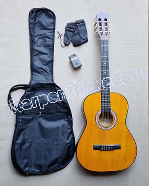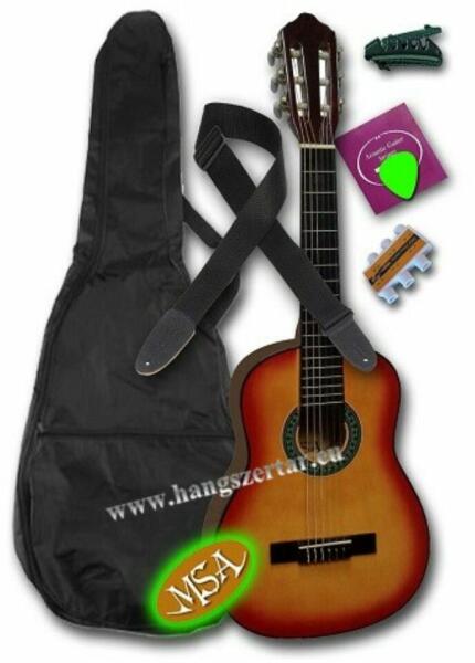 MSA C-10 NA, 7/8-os tanuló klasszikusgitár szett Gitár szett tanuláshoz, tömör hársfából készült gitárral! A gitár nyaka a 4/4-es méretű