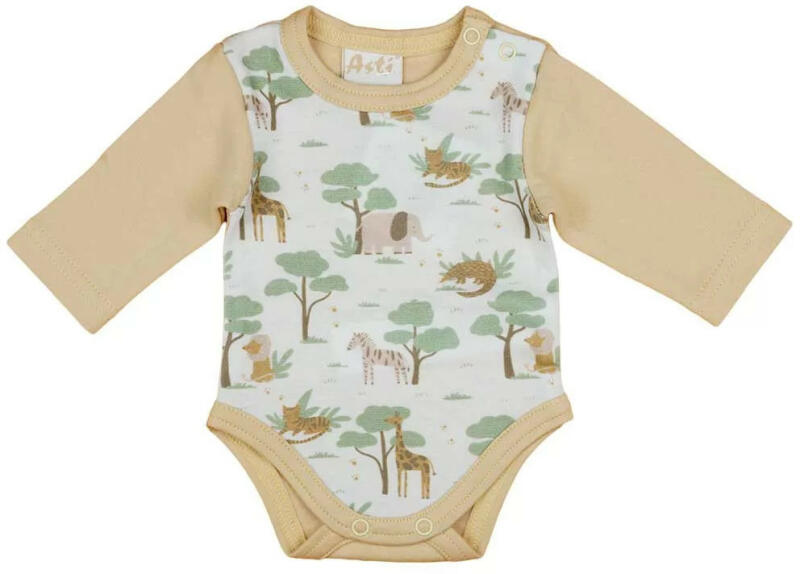 Hosszú ujjú baba body állatos mintával Állatos mintával nyomott hosszú ujjú, vállon patentos baba body. Minőségi magyar termék Anyaga: 100% pamut Minőség: I. osztály A termék nikkelmentes patenttal készül. A patent nem tartalmaz nikkelt, ezért nem vált ki allergiás reakciót az erre érzékeny babáknál.
