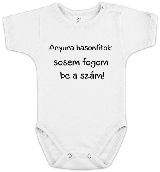 Anyura hasonlítok! Sosem fogom be a szám feliratos baba body. Anyura hasonlítok! Sosem fogom be a szám feliratos body gyerekeknek, több méretben, több színben. Anyaga: 100% pamut. Kényelmes, bő fazon. Kiváló szín- és formatartó. Többszöri mosás után sem bolyhosodik ki, felülete esztétikus újszerű marad. Méretezése a megszokott márkákhoz viszonyítva inkább a bővebb faz