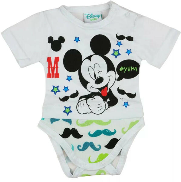 Rövid ujjú baba body Mickey egér mintával Eredeti Disney termék Vidám, nyári rövid ujjú baba body az eléjén Mickey egér mintával. Vállán patentos, így megkönnyíti a pici öltöztetését, a lába közötti patentok pedig lehetővé teszik a gyors és egyszerű peluscserét. Minőségi, bababarát, enyhén elasztikus pamut anyagból készült, ami követi kisbabák alakját és sz