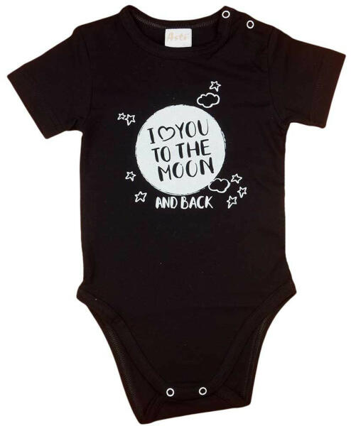 Szeretnéd, ha kisfiad is tündököljön a szeretetben? Ezzel a "Szeretlek a Holdig és vissza" feliratos rövid ujjú bababodyval könnyedén kifejezheted iránta érzett végtelen szeretetedet. A fekete színű, vállon patentos kombidressz minőségi magyar termék, ami 100% pamutból készült. Így biztos lehetsz benne, hogy baba bőre számára teljesen kényelmes és kellemes lesz viselni.