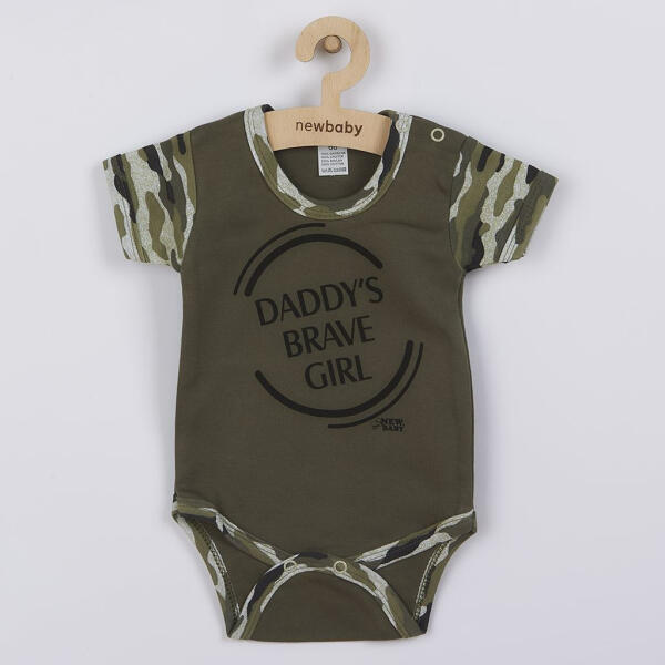 Baba rövid ujjú body New Baby Army. A body terepmintás szegéllyel és felírattal DADDY'S BRAVE GIRL díszítve. Vállnál és az ülepénél patentos. Nagyon kellemes és kiváló minőségű anyagból készült. A New Baby számára a vevői elégedettség nagyon fontos, ezért kínáljuk Önnek az új, kiváló minőségű Army kollekciót. Anyaga: 100% pamut.