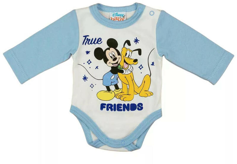 Hosszú ujjú baba body Mickey egér és Pluto mintával Eredeti Disney termék Mickey egér és Pluto mintával nyomott, vállon patentos, hosszú ujjú baba body. Minőségi magyar termék Anyaga: 100% pamutMinőség: I. osztály A termék nikkelmentes patenttal készül. A patent nem tartalmaz nikkelt, ezért nem vált ki allergiás reakciót az erre érzékeny babáknál.