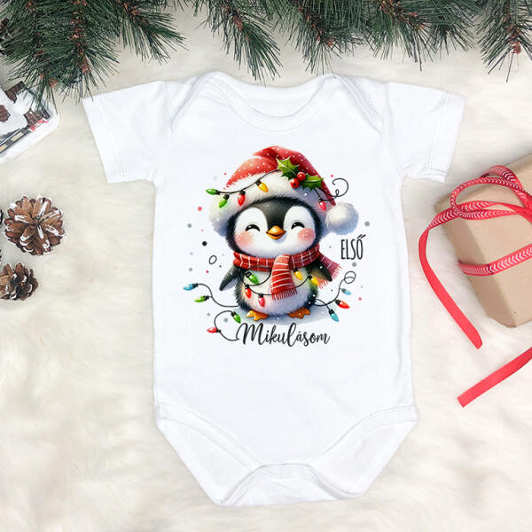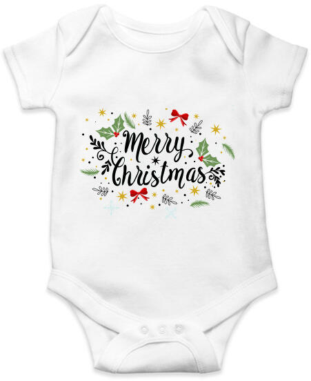 Tedd még különlegesebbé a Karácsonyt gyermeked és az egész család számára ezzel az igazán cuki Első Karácsonyom felirattal ellátott bababodyval! A minta csak fehér bodyra kérhető! A képeken látható színek nagyban függnek a monitor beállításodtól. A mintaképen látható szín árnyalataiban eltérhet a monitoron látható színektől. Tedd még különlegesebbé a Karács