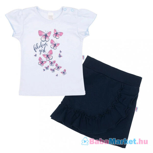 Együttesek 2-részes A webshopban jelenleg aktív babamarket12 kedvezmény kupon erre a termékre nem felhasználható. Baba 2-részes együttes New Baby Butterflies, kislányok számára. Az együttes szoknyát és rövid ujjú pólót tartalmaz. A póló pillangó képpel van díszítve. Vállnál patentos. A szoknya fodros és rugalmas gumis derékpánttal rendelkezik. Nagyon kellemes és puha