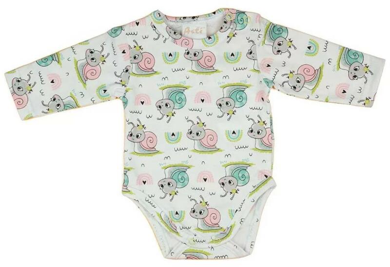 Csigusz mintával nyomott, hosszú ujjú, vállon patentos kombidressz Anyaga: 100% pamut Minőség: I. osztály A termék nikkelmentes patenttal készül. A patent nem tartalmaz nikkelt, ezért nem vált ki allergiás reakciót az erre érzékeny babáknál.