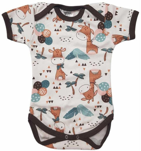 Bodyk és rugdalozók Vaganza, rövid ujjú pamut body. Rövid ujjú, vállon békanyakas, lábak között patentos megoldás a könnyebb használatért. Anyaga: 100% pamut Anyagában mintás. Mérete: 80 A termék nikkelmentes patenttal készül. A patent nem tartalmaz nikkelt, ezért nem vált ki allergiás reakciót az erre érzékeny babáknál.