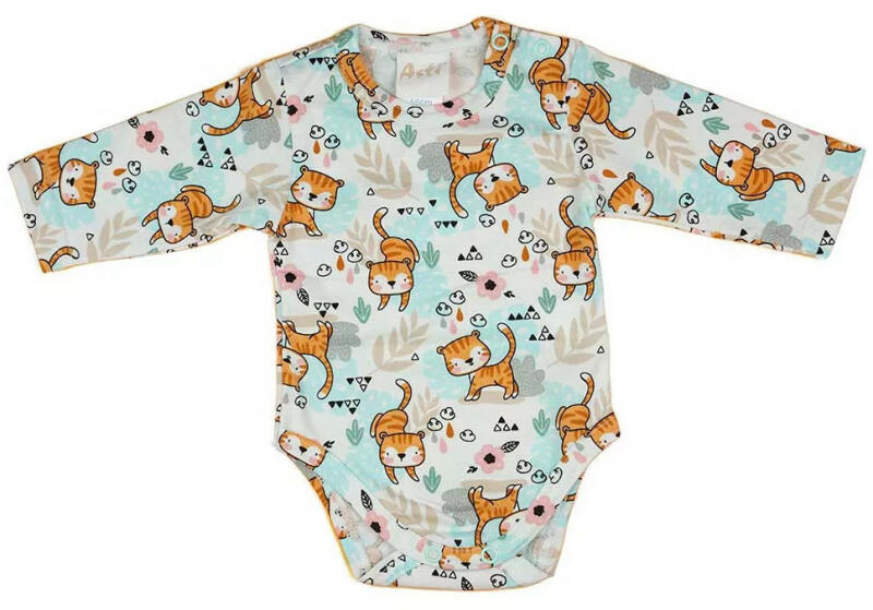 Cica mintával nyomott, hosszú ujjú, vállon patentos kombidresszAnyaga: 90% pamut , 10% elasztán Minőség: I. osztály A termék nikkelmentes patenttal készül. A patent nem tartalmaz nikkelt, ezért nem vált ki allergiás reakciót az erre érzékeny babáknál.