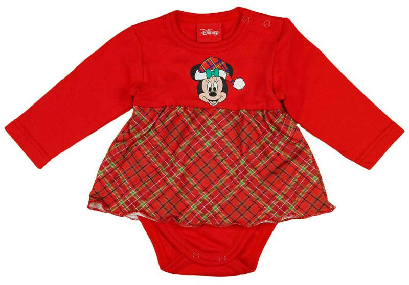Ünnepelje meg a karácsonyt ezzel a csodálatos Minnie egeres bababodyval! Eredeti Disney termék, melyen Minnie egér karácsonyi mintája díszeleg. A body hosszú ujjú, vállán patentos kialakítás, míg az alján egy kis szoknya teszi még különlegesebbé. Készüljön fel a sok elismerő pillantásra, amikor kislánya ebben a piros, karácsonyi szoknyás bababodyban tündököl. Minős