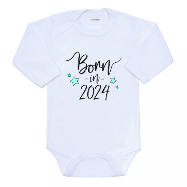 A webshopban jelenleg aktív babycenter12 és babycenteronline15 kedvezmény kuponok erre a termékre nem felhasználhatók. Eredeti pamut baba hosszú ujjú body New Baby felirattal Born in 2024. A nyomtatáshoz használt színek alkalmasak a babák számára. Puha minőségi anyagból készült, amibe a baba kényelmesen fogja érezni magát. Vállnál és az ülepénél patentos, ami megkönny