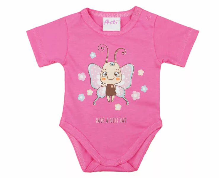 Alapvető ruhadarab babáknak, jól kombinálható más ruhákkal. Elején cuki Pillangó mintával nyomott. A picik bőrére nagyon kell vigyázni hogy semmi se irritálja ez a termék is mind a legtöbb babaruhánk 100% Pamutból készült. Tisztítása nagyon könnyű. A termék nikkelmentes patenttal készül. A patent nem tartalmaz nikkelt, ezért nem vált ki allergiás reakciót az erre ér
