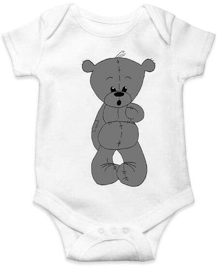 Hagyományos pamut body kisbabák számára. Mellkerülete 34 cm, hossza a vállától mérve 30 cm. Anyaga: 100% pamut.
