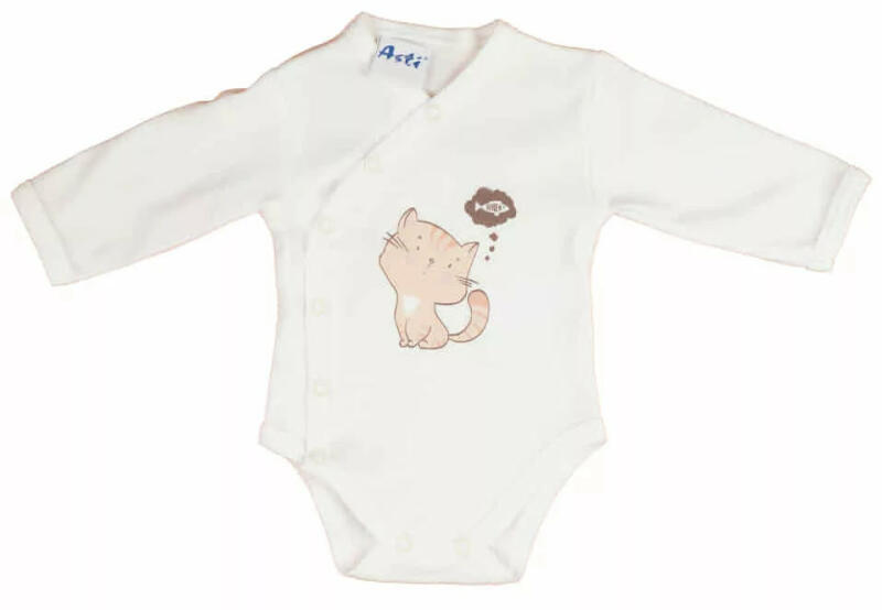 Békanyakú pamut body ami könnyen a babára adható / levehető. Alul patentos, megkönnyítve az utálatos pelus cserét. Cuki, nyomott mintával. Anyaga: 100% pamutTisztítás: kifordítva, maximum 30 fokos vízben mosható, szárítógépben nem szárítható. Fehérítővel nem kezelhető!Vasalás: kifordítva, maximum 110 fokon. Magyar termék!A termék nikkelmentes patenttal készül. A pa