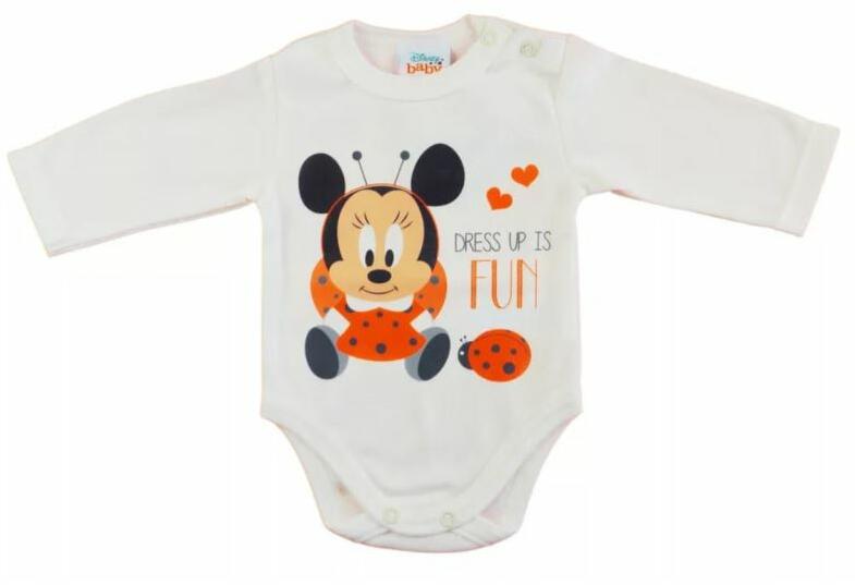 Cukiságbomba! Ezt a hosszú ujjú bababody-t a kis divatdiktátorok imádni fogják. A body Minnie egér mintával díszített, amit minden kisgyermek imád, és ami garantáltan mosolyt csal az arcukra. Eredeti Disney termék A vállán található patentoknak köszönhetően könnyedén fel- és levethető, így a pelenkázás sem lesz gond. A body 100% pamutból készült, ami puha és kényel