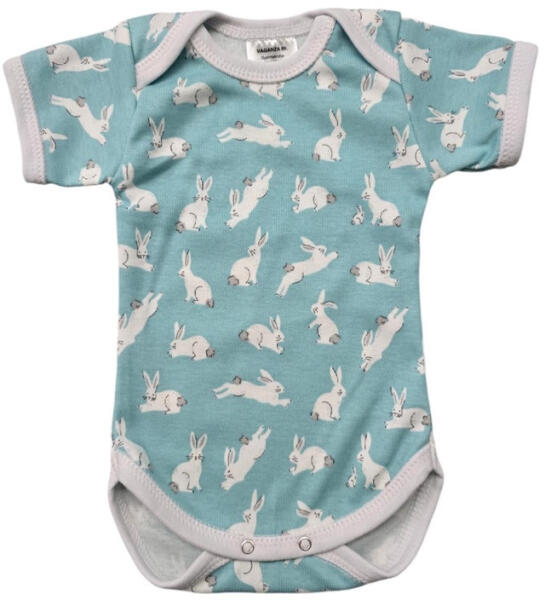 Vaganza, rövid ujjú pamut body. Rövid ujjú, vállon békanyakas, lábak között patentos megoldás a könnyebb használatért. Anyaga: 100% pamut Anyagában mintás.