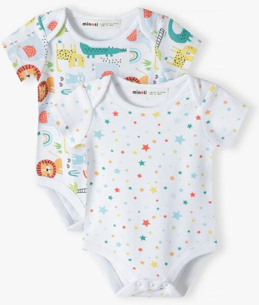 Baba bodysuit 2csomag, Minoti, SAVANAH 4. A Minoti baba bodyk puhák, aranyosak és gyönyörű és vonzó kialakításúak. Csodálatos kényelmet nyújtanak a kisbabának. Az anyag és a puhaság miatt a bodyk rendkívül kellemes tapintásúak. A készlet két darab rövid ujjú bodyt tartalmaz. Alulról rögzíthetőek, ami nagyon kényelmes, amikor pelenkát kell cserélni. A modell pamutból