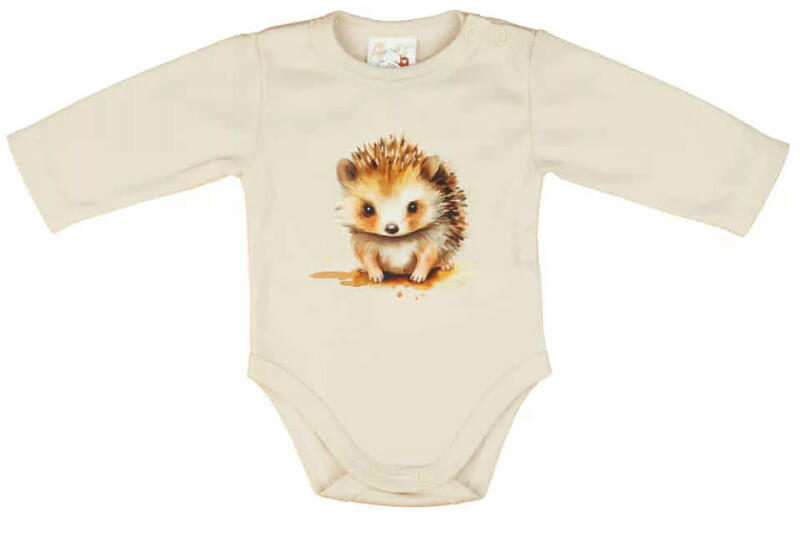Hosszú ujjú baba body Kisbabák ruhatárának praktikus alapdarabja a body. Ez a cuki állat mintával nyomott baba body minőségi, bababarát 100% pamut anyagból készült, szín- és formatartó anyagból, ami jól bírja a gyakori mosást is. Vállán patentos, így megkönnyíti a baba öltöztetését. A lába közötti patentos megoldás, pedig a gyors peluscserét teszi lehetővé. Min