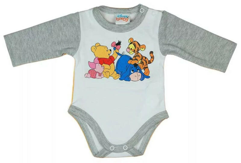 Hosszú ujjú baba body Micimackó mintával Eredeti Disney termék Micimackó mintával nyomott, vállon patentos hosszú ujjú baba body. Minőségi magyar termék Anyaga: 100% pamut Minőség: I. osztály A termék nikkelmentes patenttal készül. A patent nem tartalmaz nikkelt, ezért nem vált ki allergiás reakciót az erre érzékeny babáknál.