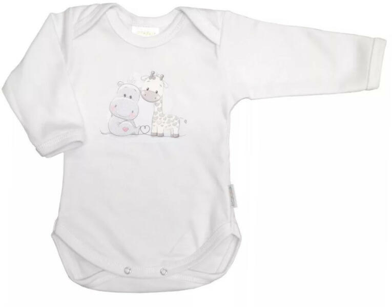 Békanyakú pamut body ami könnyen a babára adható / levehető. Alul patentos, megkönnyítve az utálatos pelus cserét. Cuki, nyomott mintával. Anyaga: 100% pamutTisztítás: kifordítva, maximum 30 fokos vízben mosható, szárítógépben nem szárítható. Fehérítővel nem kezelhető!Vasalás: kifordítva, maximum 110 fokon. Magyar termék!A termék nikkelmentes patenttal készül. A pa