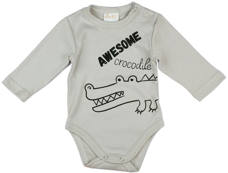 Egy igazán aranyos és kényelmes választás a kisfiúk számára! Ez a szürke hosszú ujjú body vidám krokodil mintával játssza fel a napot. A vállon található patentos kialakítás megkönnyíti a fel- és levételt, így a babázás mindig zökkenőmentes lehet. A minőségi magyar termék 100% pamutból készült, ami garantálja a puhább érintést és a tartósságot. Az I. osztá