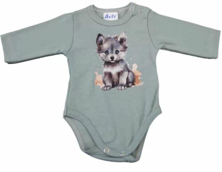 A hosszú ujjú, farkas mintás baba body a babák ruhatárának elengedhetetlen alapdarabja. Minőségi magyar termék A homok színű, 100% pamutból készült ruhadarab tökéletesen kényelmes és bőrbarát választás a legkisebbek számára. A farkas mintája vidám és aranyos hangulatot kölcsönöz a bodynak, amit a babák és szüleik is imádni fognak. A vállán található patentok m