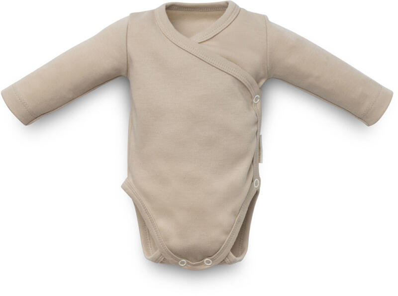 Bodyk és rugdalozók Kimonó csecsemő kombi Méret: 38-44 Anyagösszetétel 100% Organikus pamut Tulajdonságok Fazon: Elölről nyitható hosszúujjú Kimonó kombidressz, dupla méretben állítható patentokkal Szín: Mogyoró Komfort 2in1 két méret egy termékben A baba növekedéséhez állítható dupla patent Elölről nyitható 100% Organikus pamut GOTS minősített alapanyag a környe