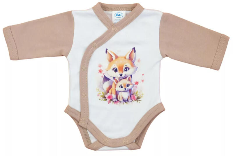 Elöl patentos hosszú ujjú baba body Erdő állatai mintával Bájos és kényelmes viseletet kínál a kisbabádnak ez az erdei állatok mintával díszített, elöl patentos hosszú ujjú baba body. A termék könnyen kombinálhatóvá válik más ruhadarabokkal. Minőségi magyar termék, melyet 100% pamut anyagból készítettek, így garantált a puhaság és a tartósság. Az I. osztályú