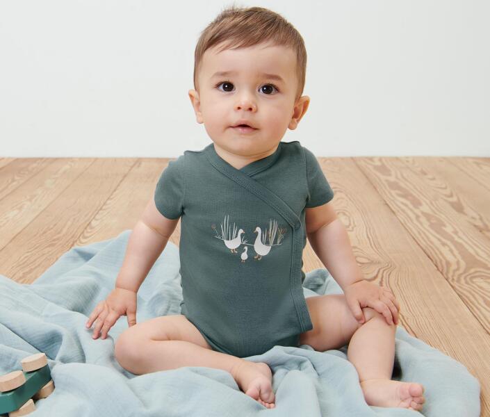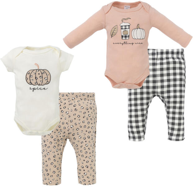 Foxy Baby Rövid és hosszú ujjú body + nadrágok A szett tartalmaz egy rövid és egy hosszú ujjó bodyt és 2 nadrágot. 0-3 hónapos kor között 3.6-5.7 kg 55-61 cm A bodyk alapvető ruhadarabok, a szett 2 db különböző színű és mintájú bodyt és 2 különböző színű nadrágot tartalmaz, amely jól kombinálható. A body 60% pamut és 40 % poliészter, nem irritálja a baba finom