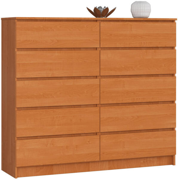 Modern, 10 fiókos komód kiváló minőségű laminált bútorlapból, éger színben. A 138 cm széles tárolóbútor ideális megoldást kínál a ruhák és egyéb személyes tárgyak rendszerezett tárolására. Maximális tárolókapacitás elegáns kivitelbenAz AKORD CLP K140 komód egy praktikus és stílusos tárolási megoldás, amely 10 tágas fiókjával maximális helykihasználást b